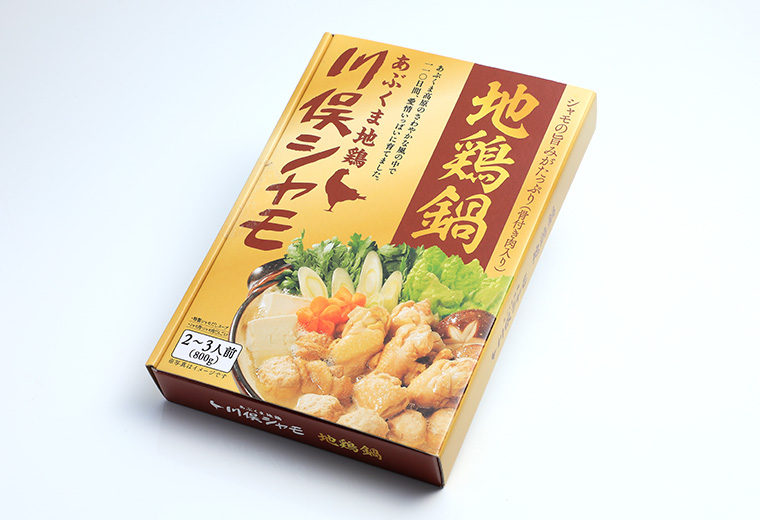 福島の地鶏〝川俣シャモ〟はほどよい弾力と噛むほどに広がる豊かな旨味が魅力。その上、肉用鶏で国内初となるJGAP(農業生産工程管理の国内認証)を取得。味わいだけでなく安心・安全も保証された鶏肉だ。そのおいしさを家庭で手軽に味わえるのが『地鶏鍋』。川俣シャモの鶏ガラを5時間以上煮込んだスープはもとより、骨付きの手羽元やもも肉、柔らかくジューシーな肉団子まで入っているから、一袋で肉の旨味も食感も存分に楽しめる。